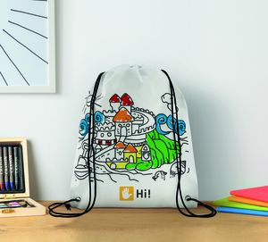 Les sacs peuvent également être remplis de récoltes. Le sac cadeau parfait pour les fêtes, les douches, les mariages ou les événements ! Sac à cordon non tissé CARRYDRAW avec 5 marqueurs. Se ferme facilement avec cordon de serrage. Fait de joie et d'amour ! Couleur blanche Dimensions, environ : 28 x 35 cm. 80 gr/m².